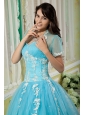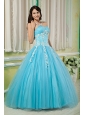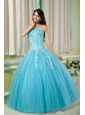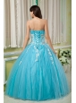 Home >  Quinceanera Dresses >  15 Quinceanera Dresses > Cheap Aqua Ball Gown 15 Quinceanera Dress Sweetheart Tulle Appliques Floor-length