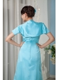 You will be an angle in this simple yet elegant aqua dress. Straight cut neckline with clean skirt all down to the floor shows off your figure to perfection. The matching jacket will fit you well. If you are looking for a unique and lovely dress for your event, this dress will on your shopping list.