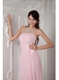 Cheap Baby Pink Bridesmaid Dress Empire Strapless Chiffon Beading Floor-length