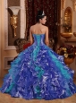 Cheap Ball Gown Blue Unique Quinceanera Dresses with Strapless Floor-length Organza Embroidery