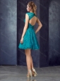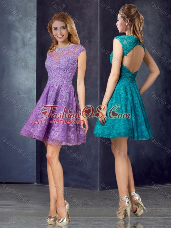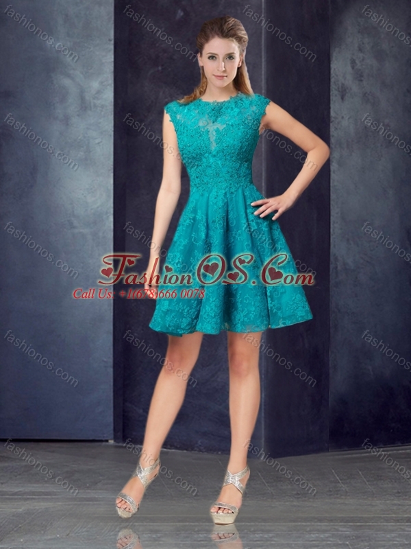 Cheap Bateau Tulle Cap Sleeves Short Prom Dress with Appliques