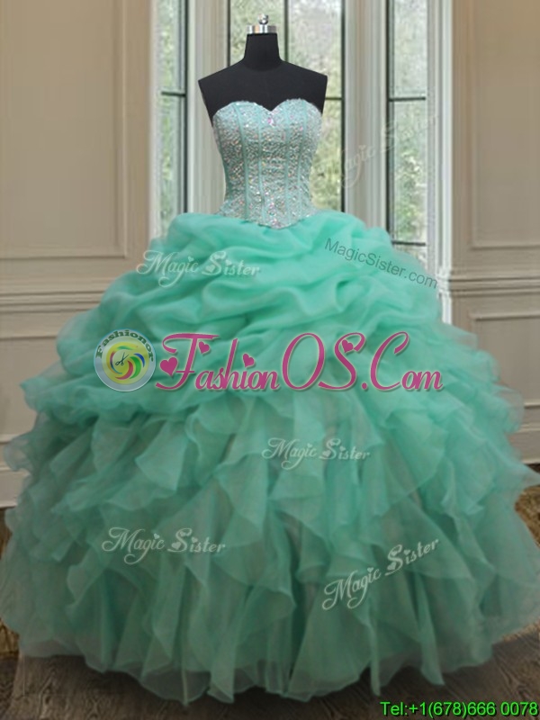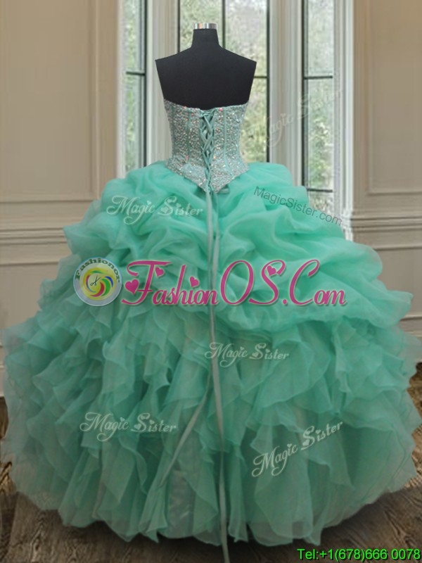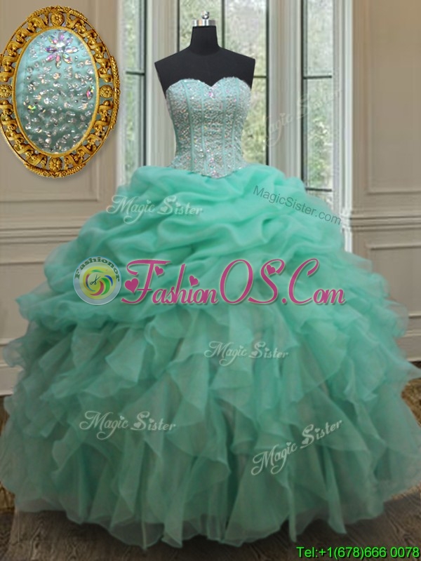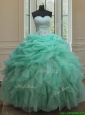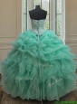 Cheap Beaded and Bubble Turquoise Organza Quinceanera Dress with Ruffles