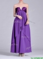 Cheap Beaded Decorated V Neck Chiffon Prom Dress in Eggplant Purple