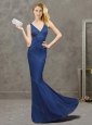 Home >  Prom Dresses >  Modest Prom Dresses > Cheap Beaded V Neck Backless Royal Blue Modest Prom Dress in Satin