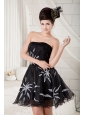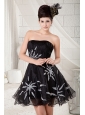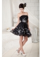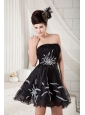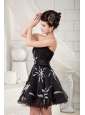 Cheap Black A-line Strapless Cocktail Dress Organza Beading Mini-length