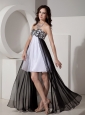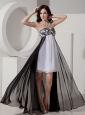 Cheap Black and White Chiffon Prom Dress with Appliques and Beading