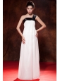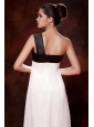 Cheap Black and White One Shoulder Bow Bridesmaid Dress Empire Floor-length Chiffon