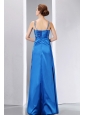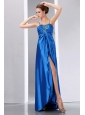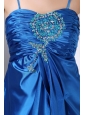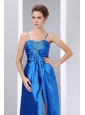 Cheap Blue Prom Dress Column Spaghetti Straps Beading and Ruch Floor-length Elastic Wove Satin