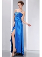 Home >  Prom Dresses >  Cheap Prom Dresses > Cheap Blue Prom Dress Column Spaghetti Straps Beading and Ruch Floor-length Elastic Wove Satin