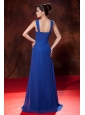 Cheap Blue Prom Dress Empire Straps Brush Train Chiffon Ruch