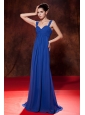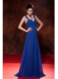 Home >  Prom Dresses >  Cheap Prom Dresses > Cheap Blue Prom Dress Empire Straps Brush Train Chiffon Ruch