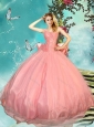 Cheap Bowknot Brush Train Watermelon Perfect Quinceanera Dress with Cap Sleeves