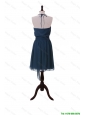 Cheap Brand New Halter Top Sashes Short Prom Dresses in Navy Blue