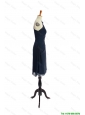 Cheap Brand New One Shoulder Hand Made Flowers Short Navy Blue Prom Dresses