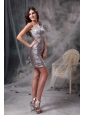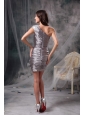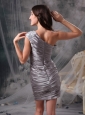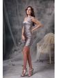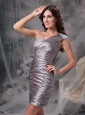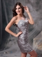 Cheap Brown Column Cocktail Dress One Shoulder Taffeta Beading Mini-length