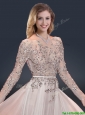 Home >  Prom Dresses >  Modest Prom Dresses > Cheap Brush Train Champagne Modest Prom Dresses with Beading