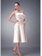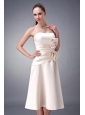 Home >  Bridesmaid Dresses >  Simple Bridesmaid Dresses > Cheap Champagne A-line / Princess Strapless Sash Bridesmaid Dress Tea-length Satin