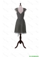 Cheap Classical V Neck Grey Short Prom Dresses with Sashes