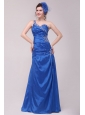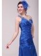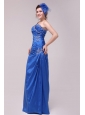 Cheap Column One Shoulder Blue Floor-length Beading Prom Dress