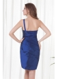 Cheap Column One Shoulder Mini-length Ruching Zipper Up Blue Prom Dress
