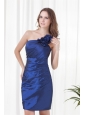 Home >  Prom Dresses >  Elegant Prom Dresses > Cheap Column One Shoulder Mini-length Ruching Zipper Up Blue Prom Dress