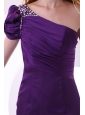 Home >  Prom Dresses >  Short Prom Dresses > Cheap Column One Shoulder Purple Mini-length Beading Taffeta Prom Dress with Side Zipper