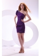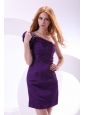 Cheap Column One Shoulder Purple Mini-length Beading Taffeta Prom Dress with Side Zipper