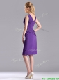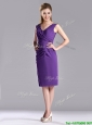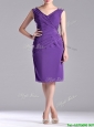 Cheap Column V Neck Knee-length Short Mother of the Bride Dress in Purple