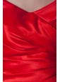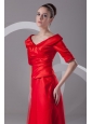 Cheap Column V-neck Red Taffeta Half Sleeves Red Ruching Prom Dress