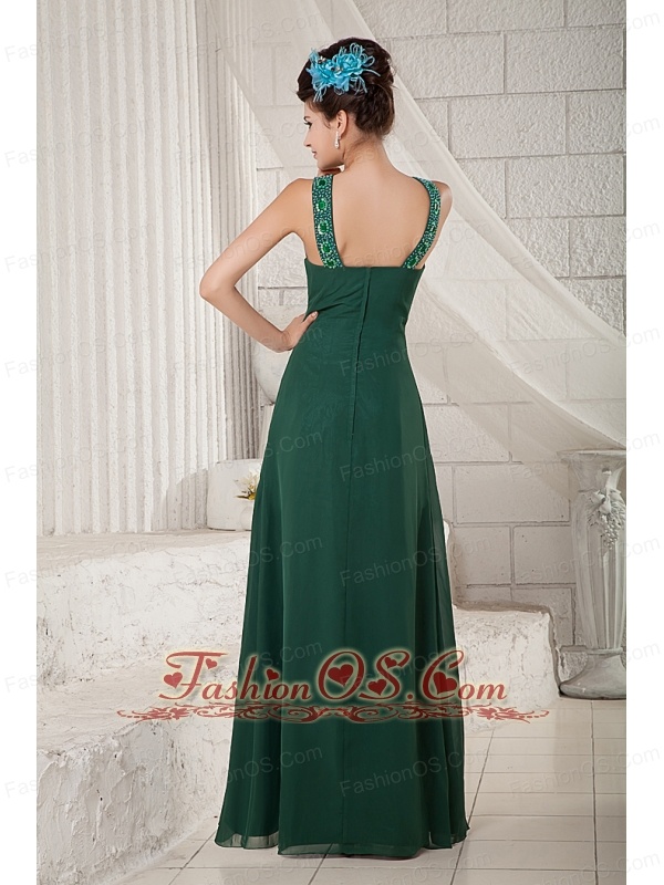 Cheap Dark Green Mother Of The Bride Dress Empire Scoop Floor-length Chiffon Beading
