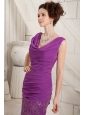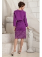 Home >  Special Occasion Dresses >  Mother of the Bride Dresses > Cheap Eggplant Purple Mother Of The Bride Dress Column V-neck Knee-length Chiffon Appliques