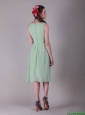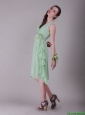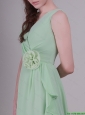 Cheap Empire V Neck Hand Made Flowers Prom Dresses in Apple Green 2016