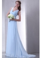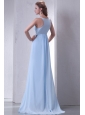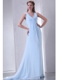 Cheap Empire V-neck Light Blue Prom Dress with Ruching