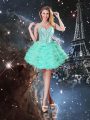 Cheap Floor Length Lace Up 15 Quinceanera Dress Turquoise for Military Ball and Sweet 16 and Quinceanera with Beading and Ruffled Layers