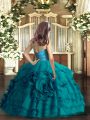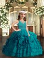 Cheap Floor Length Teal Little Girl Pageant Gowns V-neck Sleeveless Zipper