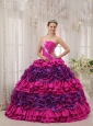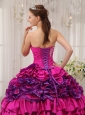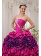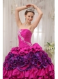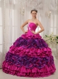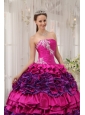 Cheap Fuchsia Quinceanera Dress Straplesas Taffeta Appliques and Ruch Ball Gown