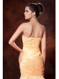 Cheap Gold Prom Dress Mermaid Strapless Floor-length Taffeta Ruch