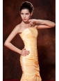 Home >  Prom Dresses >  Cheap Prom Dresses > Cheap Gold Prom Dress Mermaid Strapless Floor-length Taffeta Ruch