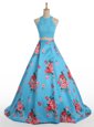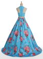Home >  Prom Dresses >  Unique Prom Dresses > Cheap Halter Top Floor Length Zipper Prom Gown Blue and In for Prom with Beading and Appliques and Pattern
