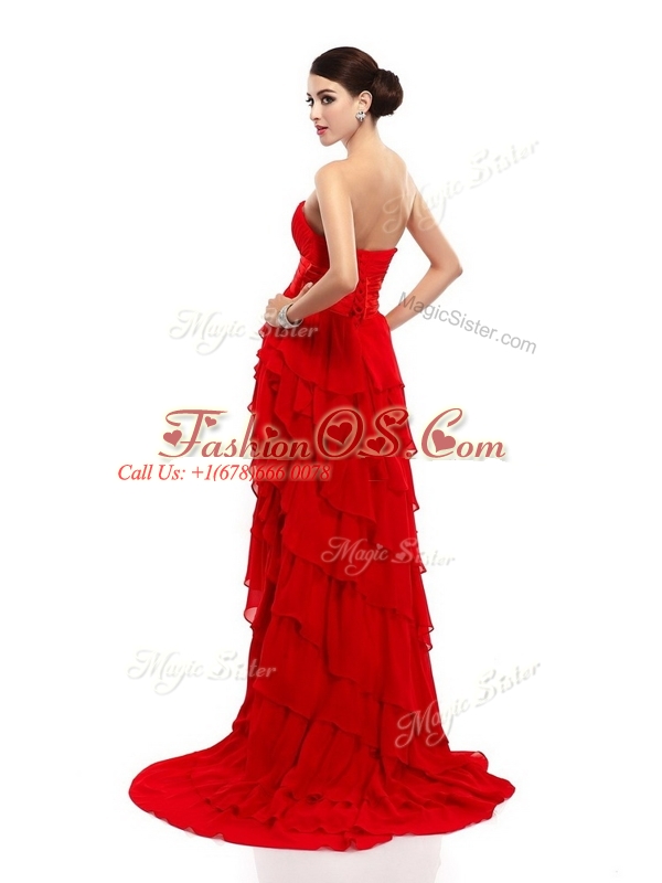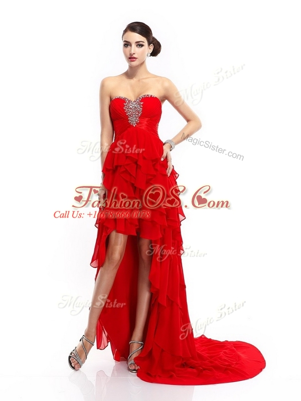 Cheap High Low Beading and Ruffled Layers Celebrity Dresses in Red