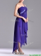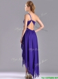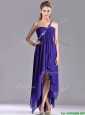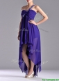 Cheap High Low One Shoulder Criss Cross Prom Dress with Beading