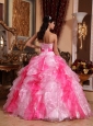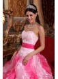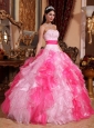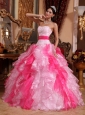Cheap Hot  and Baby Pink Quinceanera Dress Sweetheart Organza Beading and Ruch Ball Gown