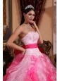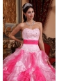Cheap Hot and Baby Pink Quinceanera Dress Sweetheart Organza Beading and Ruch Ball Gown