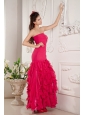 Cheap Hot Pink Empire Prom / Evening Dress Sweetheart Chiffon Appliques Ankle-length