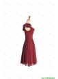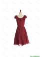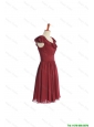 Cheap Inexpensive Wine Red Short Prom Dress with Ruffled Layers and Belt