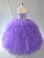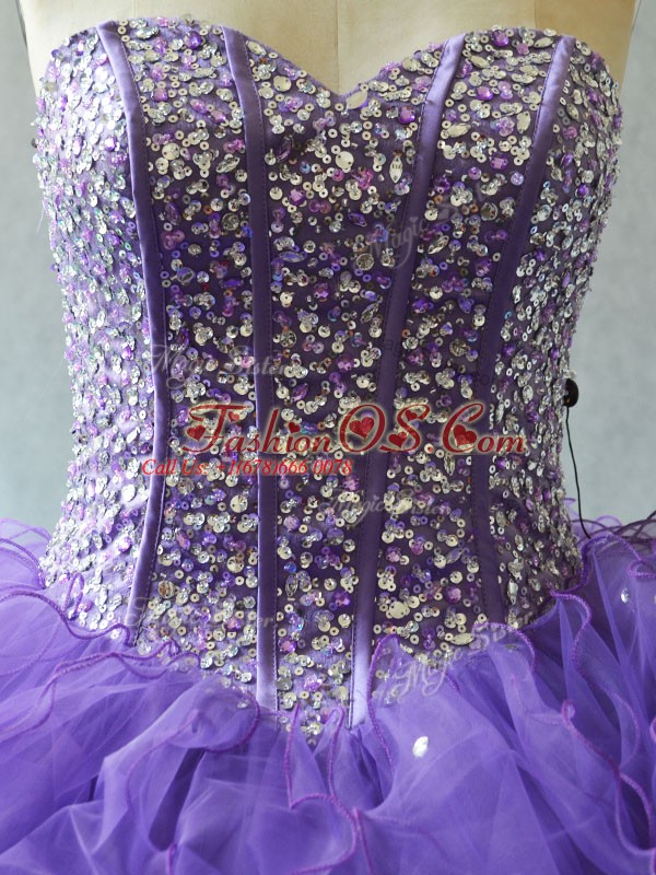 Cheap Lavender Sweetheart Neckline Beading and Ruffles and Sequins Quinceanera Dress Sleeveless Lace Up