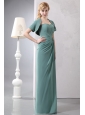If you're looking for a chic and elegant design for your next event, look no further! It features a gorgeous sweetheart neckline that's sure to make the most of your figure. The fabric is gathered into a lovely knot with colorful beading drencehed. The straight skirt falls in soft pleats and folds, pooling at your feet. The matching jacket gives you a addtional surprise. This is an absolutely stunning design for anyone for any occasion.