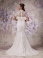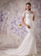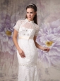Cheap Mermaid High Neck Lace Wedding Dress Beading Court Train
