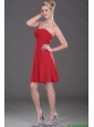 Cheap Mini Length Strapless Red Prom Dresses with Ruching