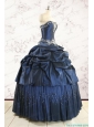 Cheap Navy Blue Quinceanera Dress with Embroidery and Pick Ups